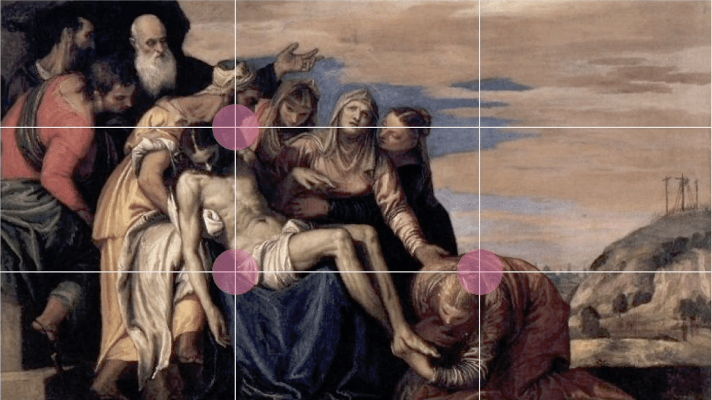 Композиционный центр — основная фигура, которая притягивает внимание в первую очередь. Обычно он находится в реальном,, физическом центре листа или на пересечении границ модульной сетки.