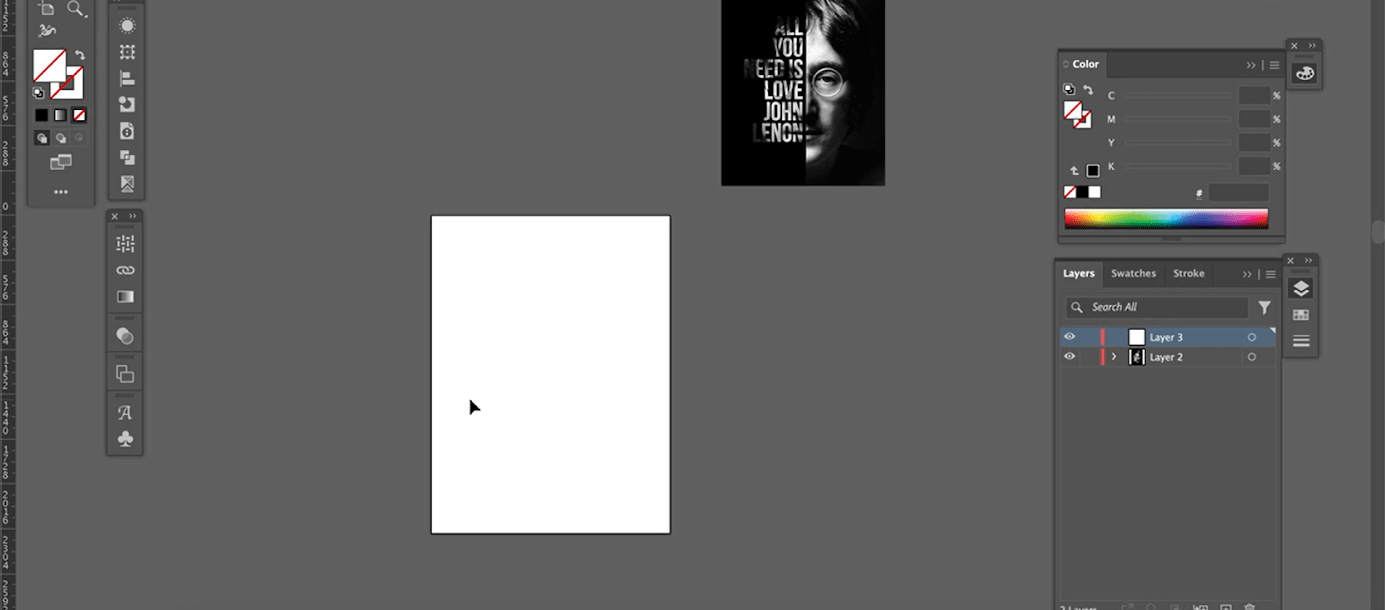 Это не обязательная часть, если вы планируете делать плакат без типографики. Но в нашем макете есть фраза «All you need is love. John Lennon», так что его можно скопировать из любого текстового файла с помощью команды Ctrl + C и Ctrl + V или набрать вручную с помощью инструмента Text.